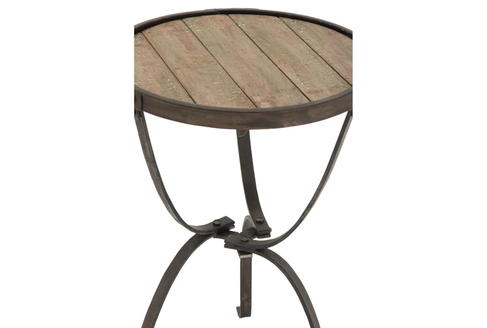 This 18 inch round metal and wood pedestal accent table boasts a casual style that effortlessly complements any decor. Crafted from high-quality metal, this table is built to last and features a sturdy wood top that’s perfect for holding a lamp, vase, or other decorative items.