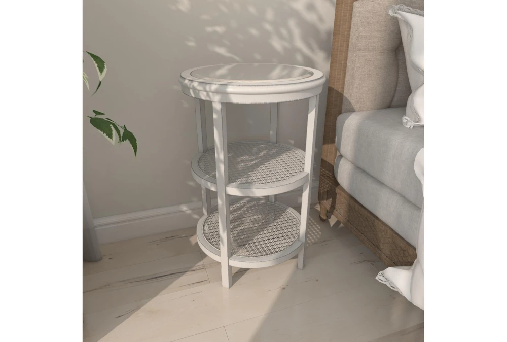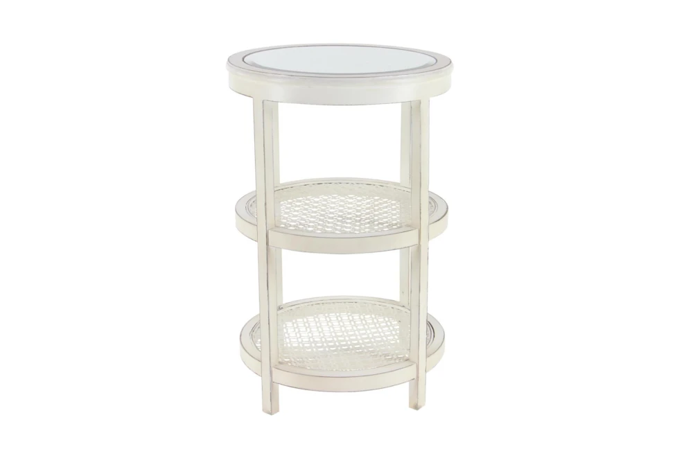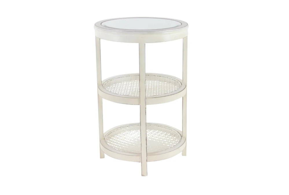 3-Tier White Mirror Top And Cane Accent Table