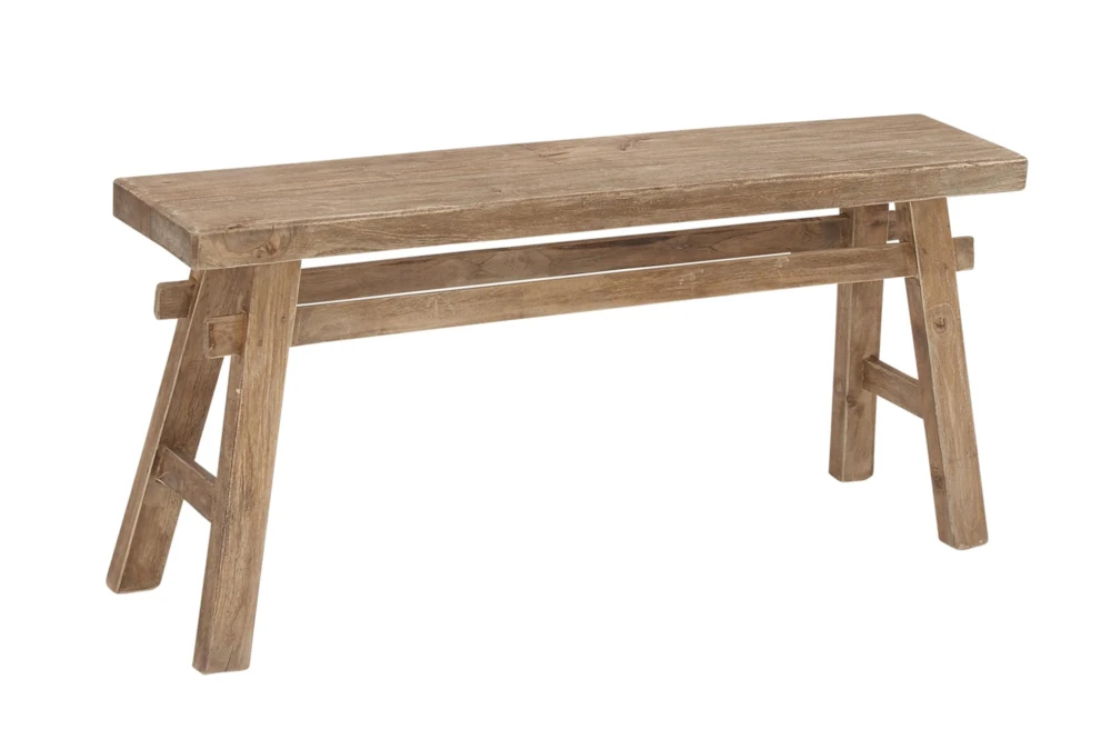 This 47 Inch Mahogany Wood Saw Horse Bench is a narrow yet sturdy addition to any indoor space. Its rustic style and solid wood structure, with angled legs in a trestle-inspired design, create a cozy and organic feel. The light brown finish adds to its natural look.