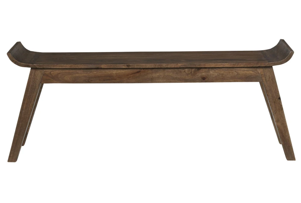 This 48″ brown accent bench is a solid wood, backless piece perfect for any casual entryway. Its curved design adds a touch of elegance to the room.