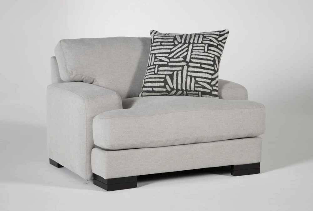 You’ll finally discover what’s been missing from your living room once you experience our Aidan chair. A deluxe cushion features foam core wrapped in a soft down-alternative for plush seating. The inviting design is also distinguished by arm rests that are low enough to lean on, flat enough to lay phones and TV remotes on, and wide enough to act as extra perches during parties. Through our Special Order program, you can customize this piece with your choice of fabrics at no extra charge.