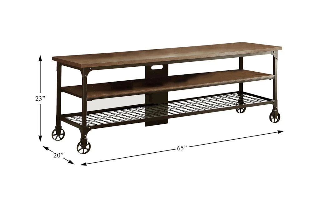 This Bennie 65″ TV stand is the perfect addition to any rustic living room, featuring ample storage space, convenient shelves, and easy cord management. Crafted from sturdy wood and designed with rolling wheels, this stand is both functional and stylish.
