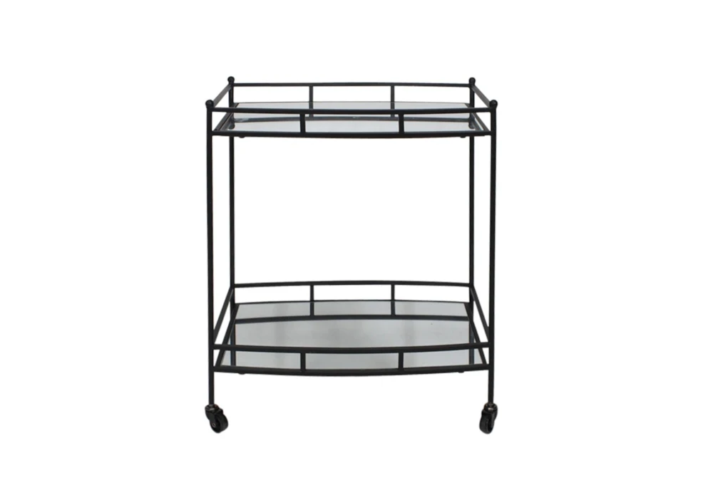 This Black Metal 28″ 2 Tier Rolling Bar Cart is a contemporary addition to any dining room, with storage and shelves perfect for serving drinks and snacks. It features wheels for easy mobility and is made of durable black iron, requiring assembly.