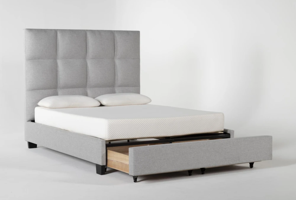 With its grid-style headboard, our Boswell bed will inspire you to think inside the box. Bespoke in grey 100% polyester fabric, the fully upholstered design brings clean lines, classic sophistication and exceptional comfort to your sleep space. In addition to a simple panel version, we offer a storage option, so you can stow away blankets and sheets easily and conveniently.