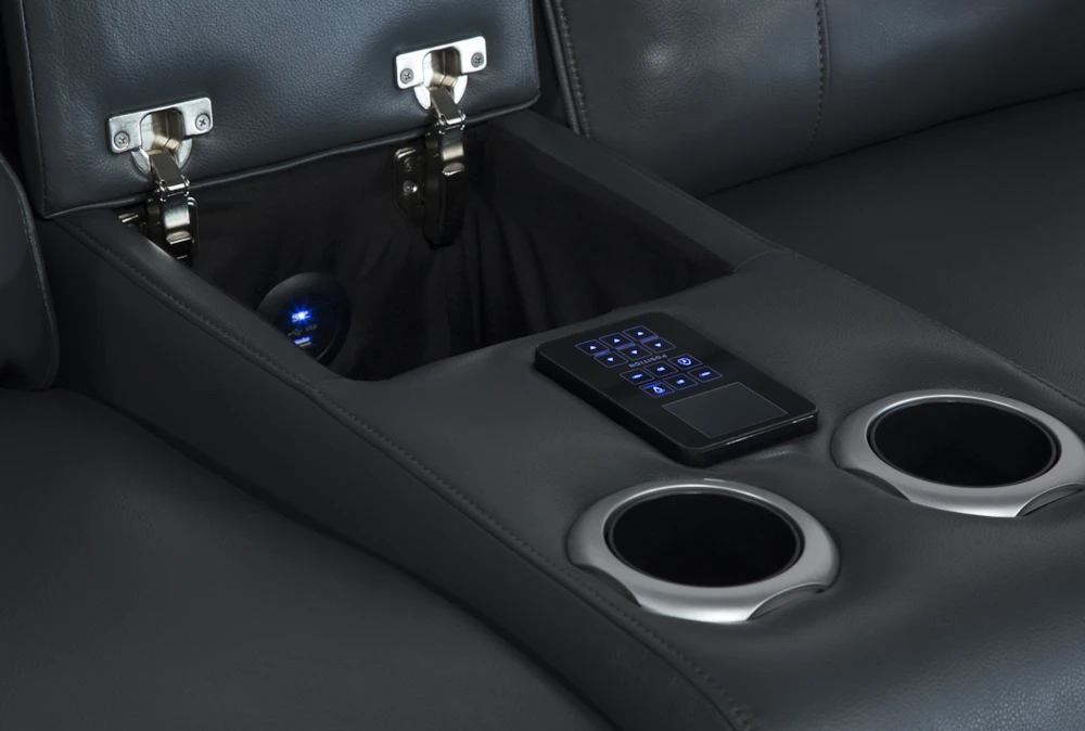 A loveseat that truly does it all, this design comes complete with a variety of features that will bring more comfort and ease to your life. In addition to power reclining, it features power headrests, power lumbar support, and a home button, so you can adjust to the best positions for relaxation. A center console offers multiple conveniences, including a built-in remote for tech lovers, 2 cupholders, a deep compartment for storage, plus USB ports, so you can charge things up while you wind down.