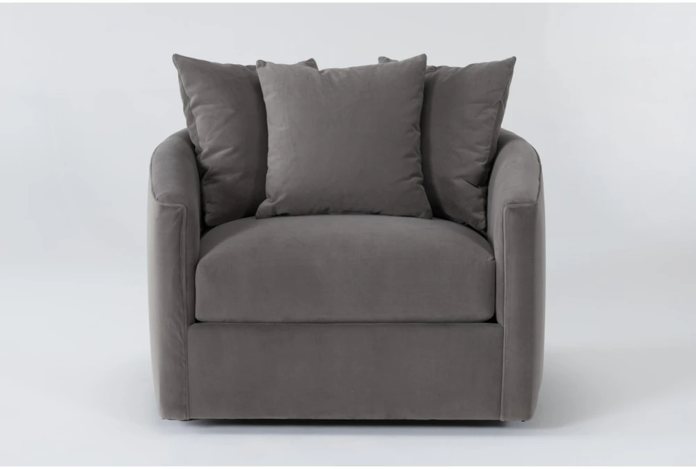 If you’re looking for a seat that offers equal parts style and comfort, our Bryden Dell Otter swivel accent chair is up to the task. Distinguished by elegant curves, this design is a cozy, shapely refuge for reading, relaxing, conversing or TV watching. Luxuriously deep and wide, you’ll find yourself wanting to curl up and wind down for hours. The swivel mechanism is the icing on top, allowing you to enjoy a soothing range of motion, while plush back pillows soften things up. You can decide to customize the fabric at no extra cost and pick a color and texture that fits your vision.