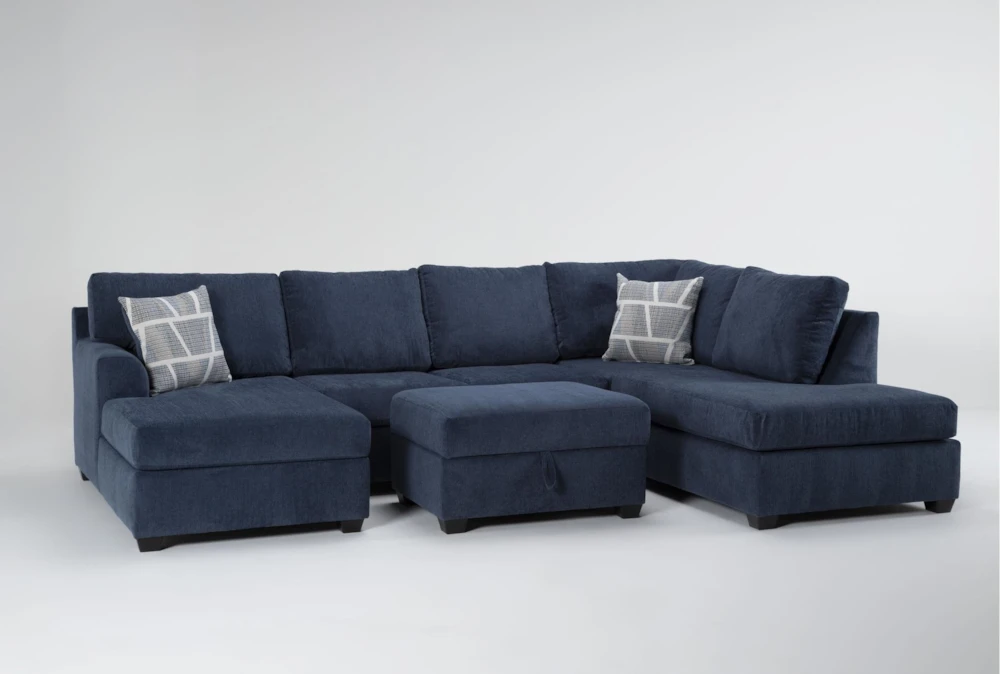The snuggle is real on our Colby sectional, which is designed to provide the ultimate in cozy-up comfort. A variety of components allow for a variety of possible configurations that offer spacious lounging. Manufactured by and for Living Spaces in our very own facility, the designs offer tremendous quality and value. Not only will you enjoy the soft and durable fabric – available in multiple colors – the cushions are loose and reversible, which means better and more even wear over time. Movie marathons and game nights will never be the same when you’re taking it all in from here.