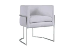 The Elle Grey Velvet Dining Chair With Silver Leg is a modern piece of furniture handcrafted by skilled artisans with high-quality fabric and metal materials. This chair is part of the Inspire Me Home Decor collection and features a sleek stainless steel frame available in a silver or gold finish.