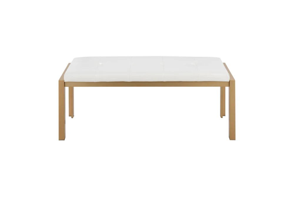 This modern Fede Gold Metal and White Faux Leather Bench is the perfect addition to any stylish home. Its backless design and comfortable cushion make it both practical and beautiful.