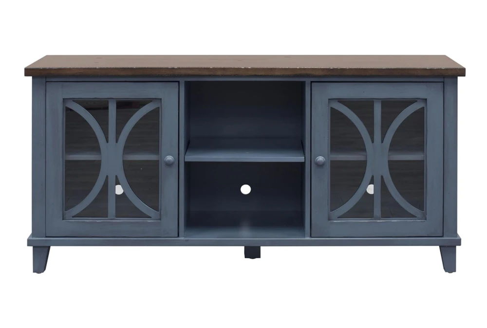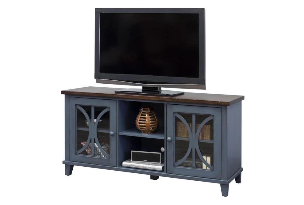 This traditional Ferriday 60″ Blue Tv Console is crafted from high-quality wood, and boasts ample storage space with shelves, doors, and glass doors, all while keeping cords organized and out of sight. Perfect for any living room in need of a stylish and functional entertainment center.