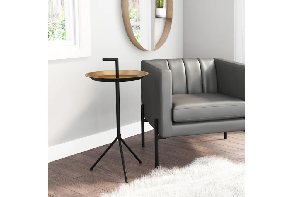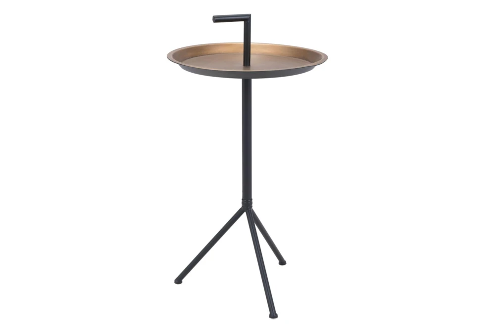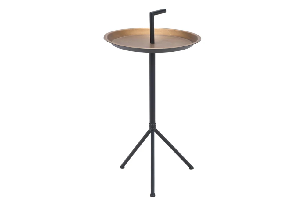 This contemporary Gold and Black Tray Accent Table is the perfect addition to any room. Crafted from sturdy metal, it exudes elegance and sophistication.