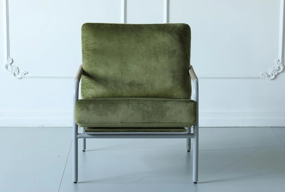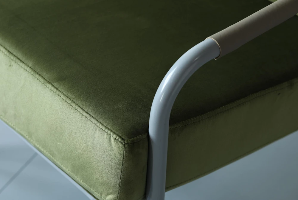 This Green Velvet + Grey Metal Frame Accent Chair is a stunning addition to any modern living room or bedroom, featuring comfortable armrests and a sleek metal frame. The luxurious velvet material adds a touch of elegance to your space, while the rich green color adds depth and dimension.