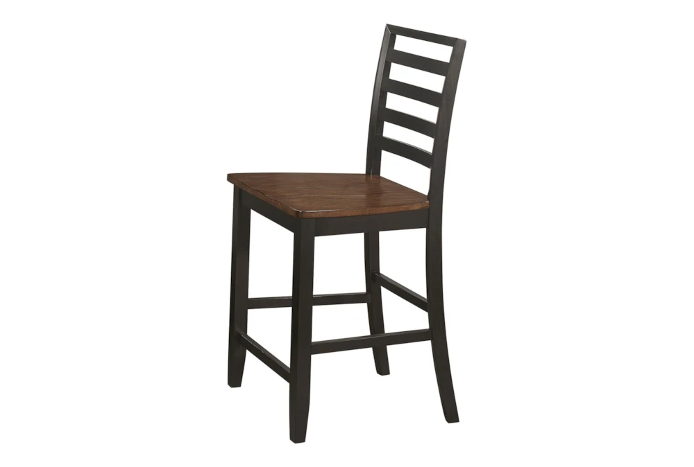 The Jarvis 25″ Counter Stool Set of 2 is a casual style, armless stool set made of Asian hardwood with a slat back and added storage shelves. This set includes one counter height table and four chairs, with overall table dimensions of 35.75″ H x 60″ W x 60″ L and chair dimensions of 41.25″ H x 19″ W x 20.75″ D, with a seat height of 24.5″ and table leaf size of 4 inches.