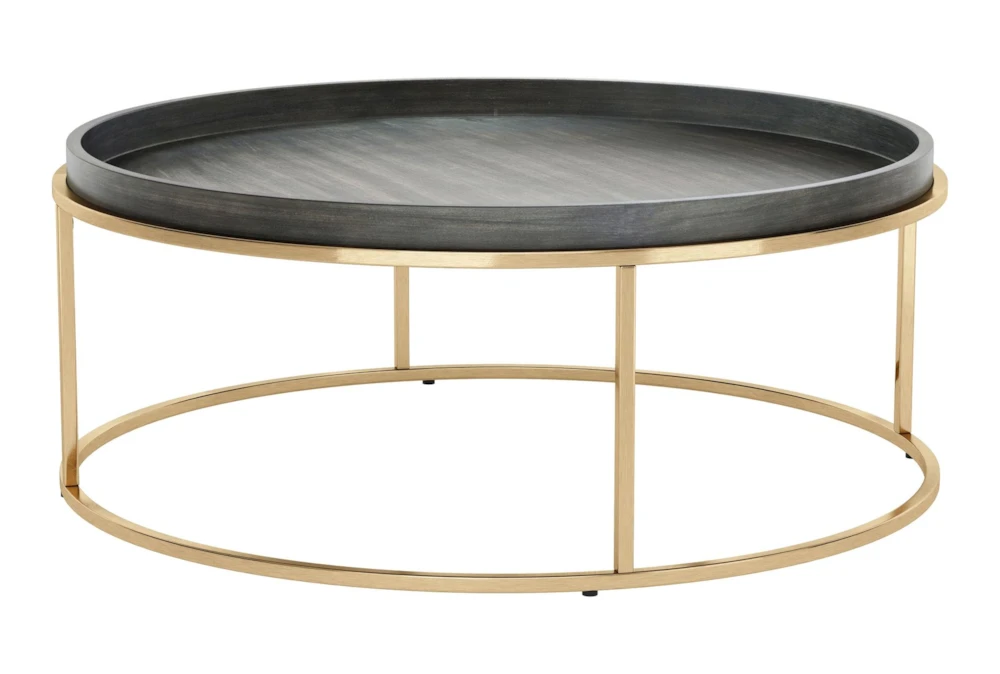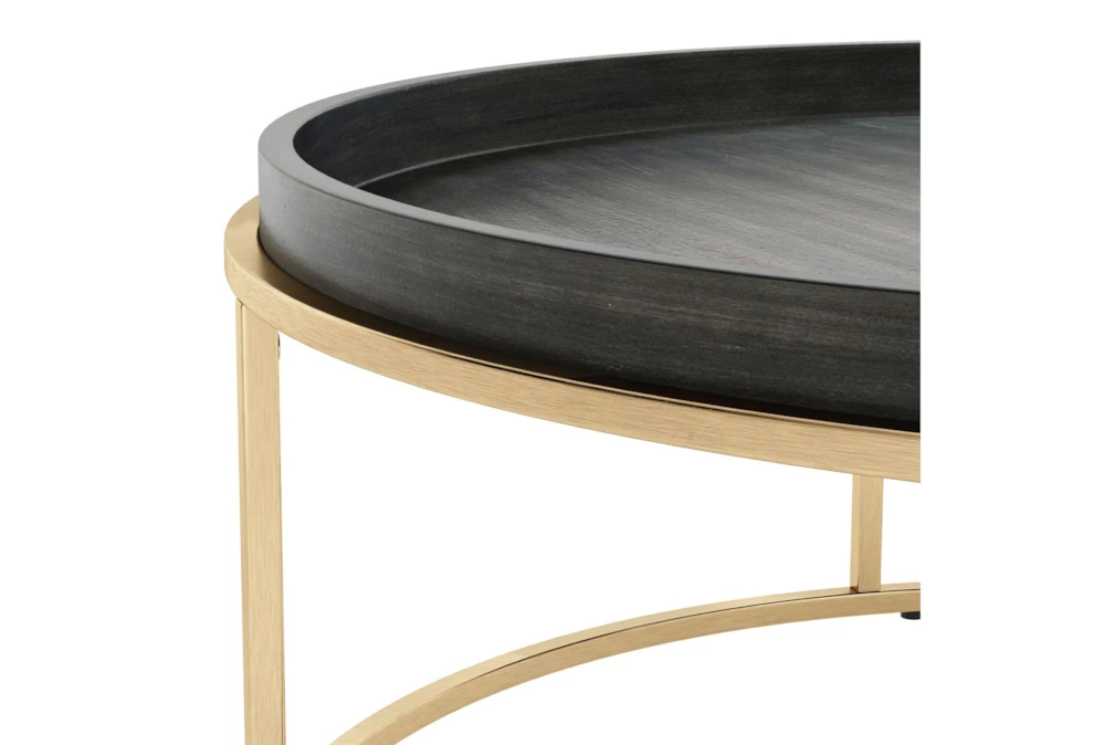 This modern coffee table, the Javier Black Tray, is made from a sleek black metal and features a durable mango wood tray top. Assembly is required, and the table also includes brass and iron accents. – Made from black metal with a sturdy mango wood tray top- Includes brass and iron accents for added style- Assembly is required for easy setup