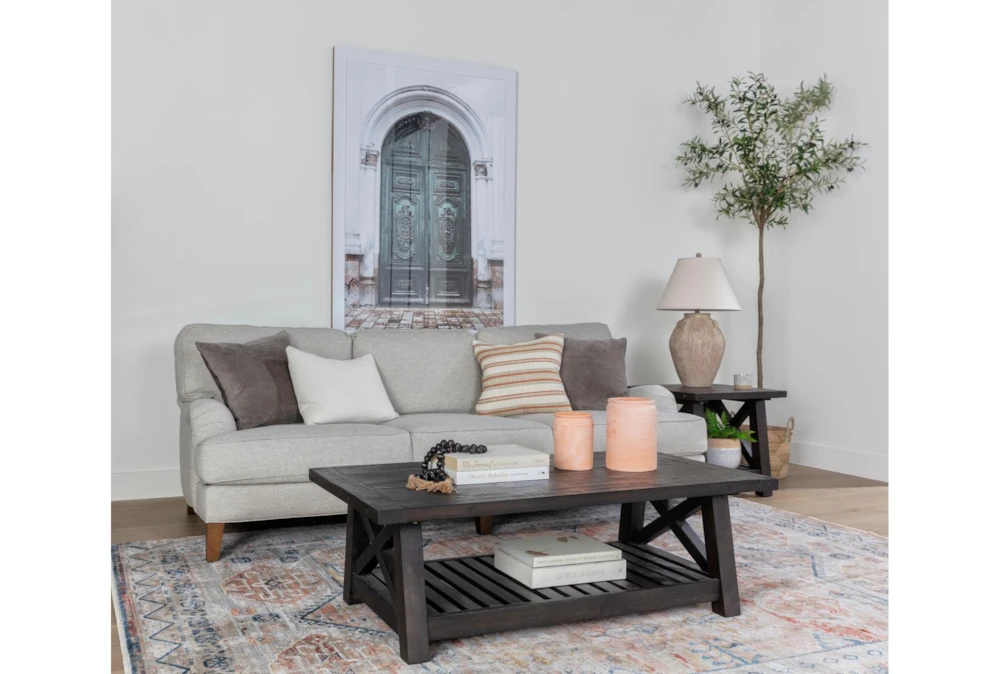 Thanks to 100% solid pine construction, the items in our Jaxon occasional collection are truly designed by nature. The wood’s character plays a central role in the authenticity and rustic charm of each piece, from the rugged texture, to the knots, nicks, splits and imperfections that ensure they’re one-of-a-kind. Decked in a dark cafe finish and distinguished by metal bolt detail, this end table features cross-braced legs and a slatted bottom shelf for displaying additional books, magazines and decorative accessories.