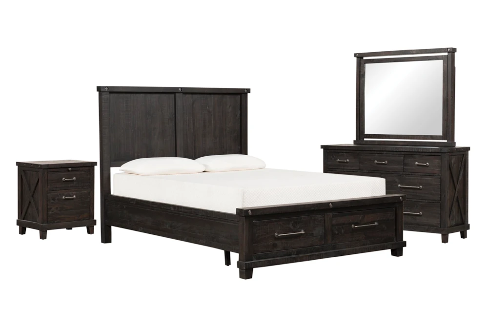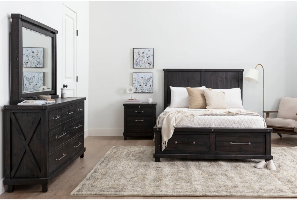 Thanks to 100% solid pine construction, the items in our Jaxon bedroom collection are truly designed by nature. The woods character plays a central role in the authenticity and rustic charm of this piece, from the rugged texture, to the knots, nicks, splits and imperfections that ensure it is one-of-a-kind. Decked in a dark cafe finish and distinguished by metal bolt details, the bed is available with or without storage.