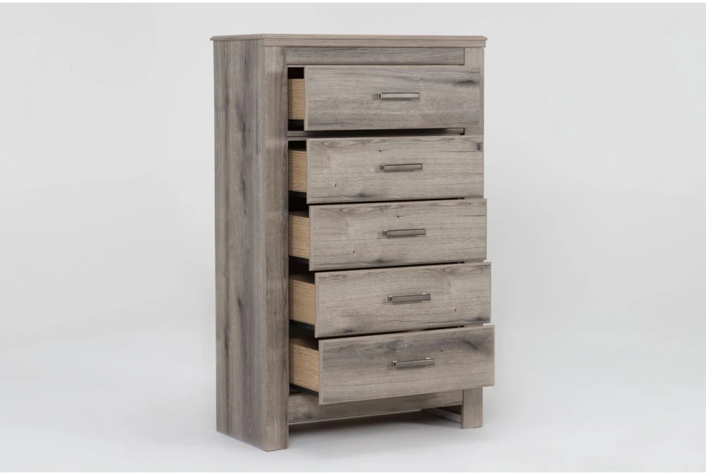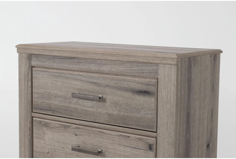 All the rustic vibes are coming at you, courtesy of our Jeraco Grey collection, which boasts rugged appeal and natural character that will enrich your bedroom. It’s easy to create a warm, cozy retreat with these pieces, which charm with a unique grey finish. Clean lines and sleek hardware keep the look simple and versatile, while storage features and a nightstand with USB ports provide function and ease.