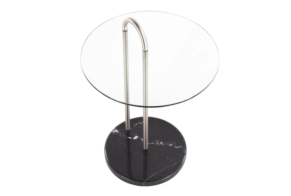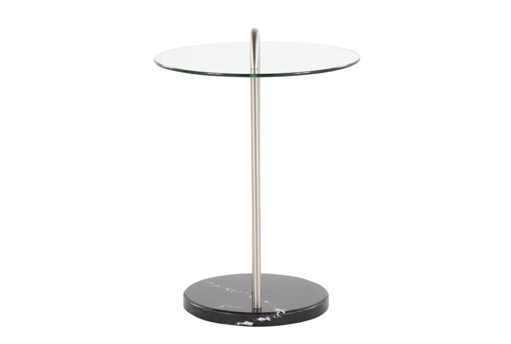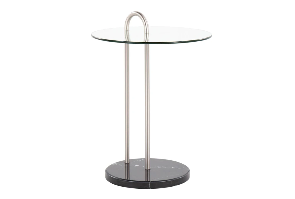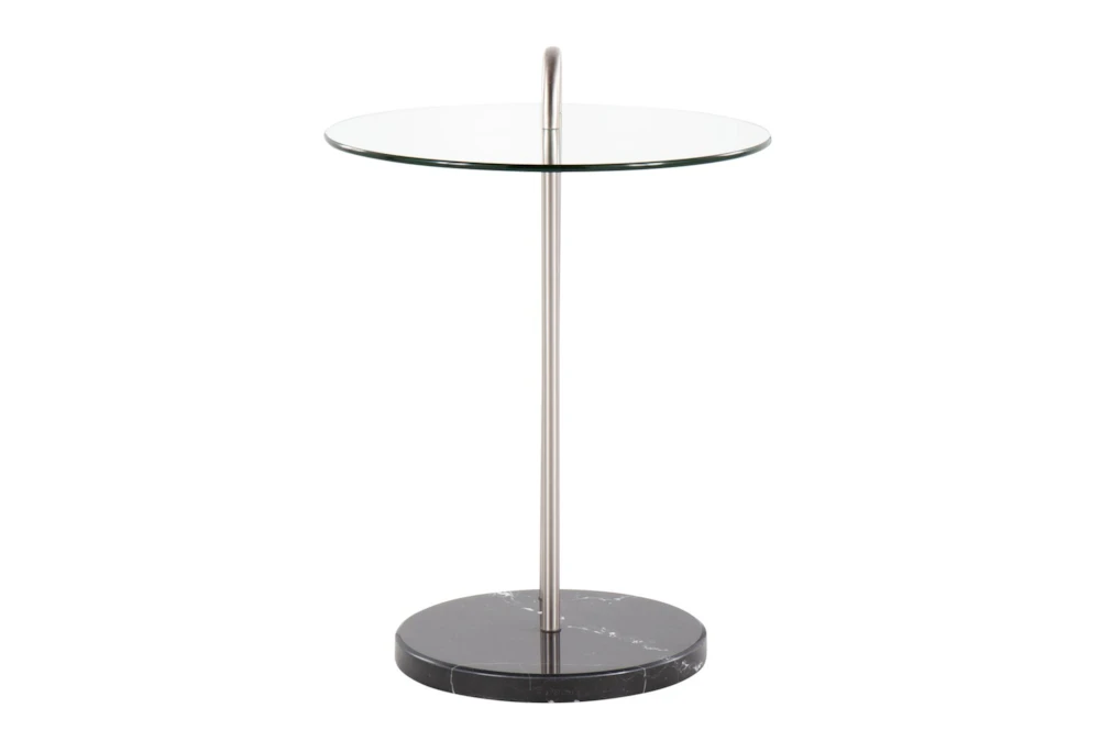 Elevate your living space with the Kate Black Marble, Nickel and Glass Side Table, featuring a sleek glass top and modern style. Crafted from durable metal, this stunning piece is the perfect addition to any contemporary home.