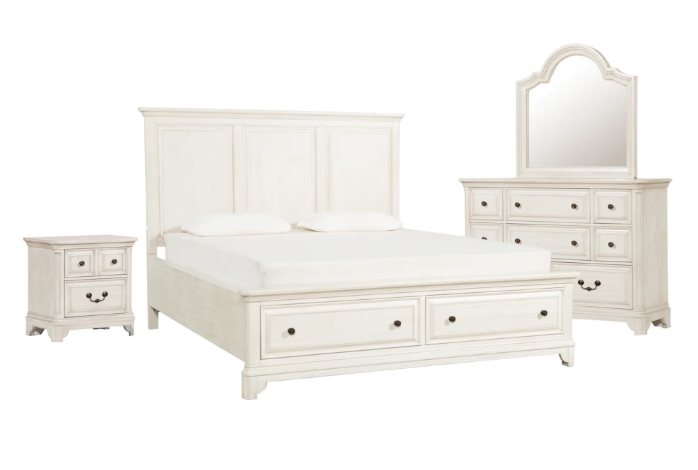 A new addition to our Kincaid collection, this storage bed’s construction reflects a fresh take on tradition. Decked in a charming weathered white finish, the sturdy, stately hardwood and veneer design features a paneled headboard and footboard with classic molding detail, plus two drawers for extra convenience.
