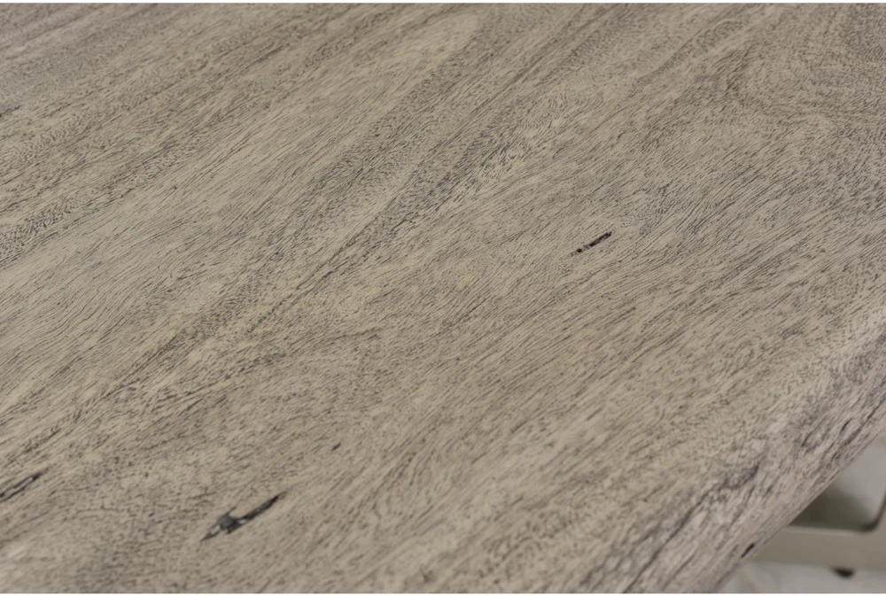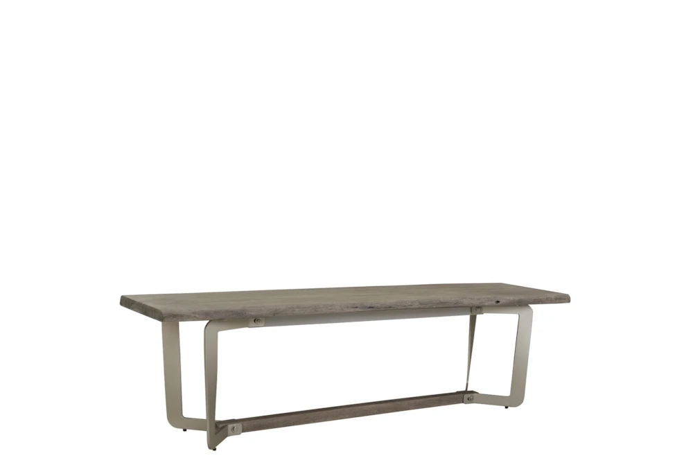 The Kinley 64″ Dining Bench is a modern-style bench made of sandblasted gray Acacia wood with a live edge. It is designed for use in the dining room and requires assembly.