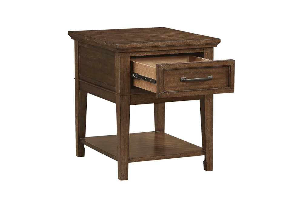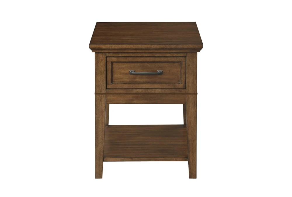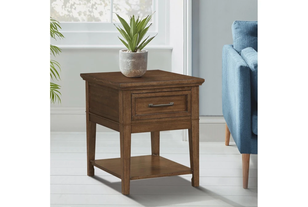 The Leanor End Table is a casual yet elegant addition to any living room, crafted from high-quality wood and finished in a warm brown hue. Assembly is required, but the convenient UPS parcel shipping makes it easy to receive and set up in your home.