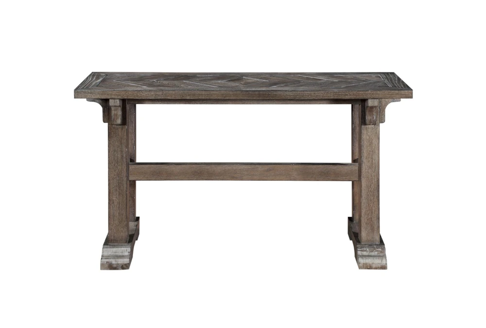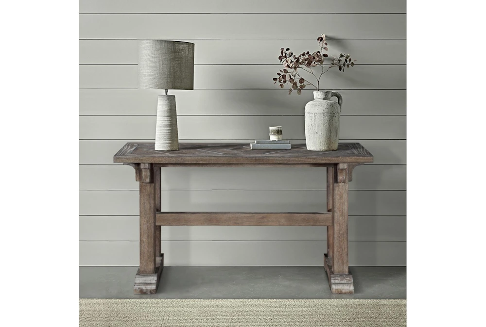 This Leo Console Table boasts a rustic style with its wooden material and warm brown color, making it a perfect addition to any living room. Assembly is required, but it ships conveniently via UPS parcel shipping.