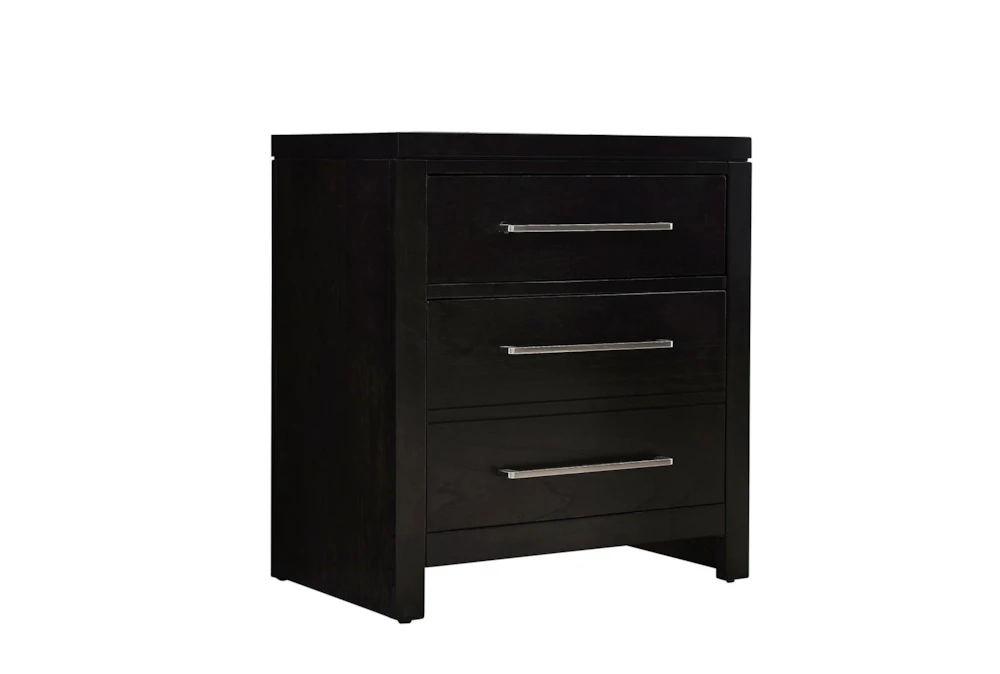 The Leroy Black Nightstand is a contemporary-style bedroom piece with 3 spacious drawers made from solid rubberwood, tropical wood, mindy veneer, MDF, plywood, particle board, and laminated veneer lumber. Assembly is required and the nightstand comes in a sleek midnight black color.