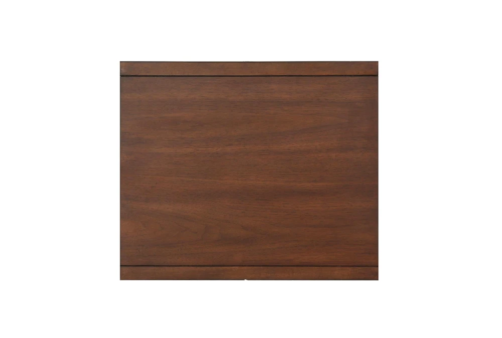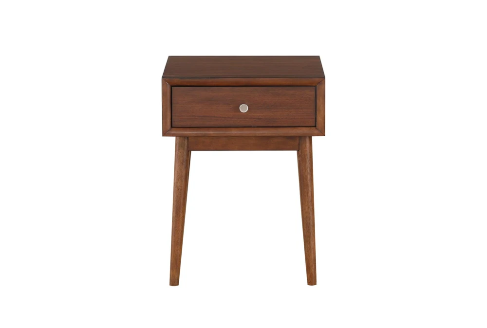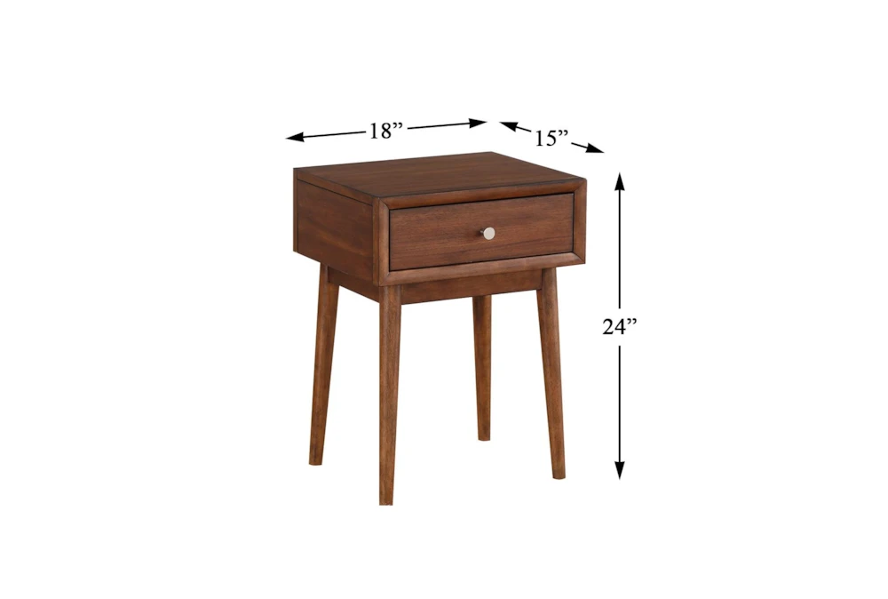 The Leslie End Table is a modern-style piece made of quality wood. It features storage and drawers, with a single dovetail drawer that has ball bearing glides and polished nickel tone knobs. Assembly is required for this brown-colored rubberwood table that will fit perfectly in any living room.