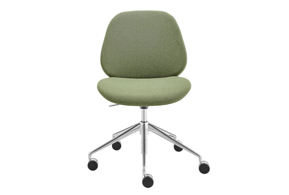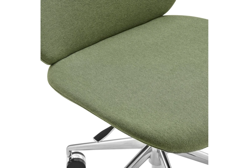 Lyle Office Chair without Armrests in Green Fabric with Polished Aluminum Base