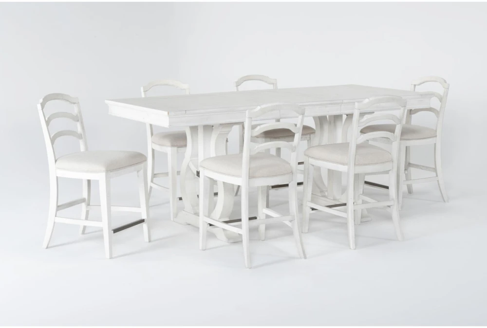 Our popular Martin dining collection is taking entertaining to the next level with counter height designs and storage pieces that bring the same beloved class and elegance to your space. Graceful curves, old-world details and meticulous pine construction bring a sense of tradition, while the increase in stature keeps things casual and approachable. In addition to a striking table, plus upholstered and wood stools, you can add a wine tower and bar cart that serve as beautiful, functional additions to special occasions. The pieces feature a distressed rubbed-through finish, which showcases the wood’s authentic, natural characteristics.