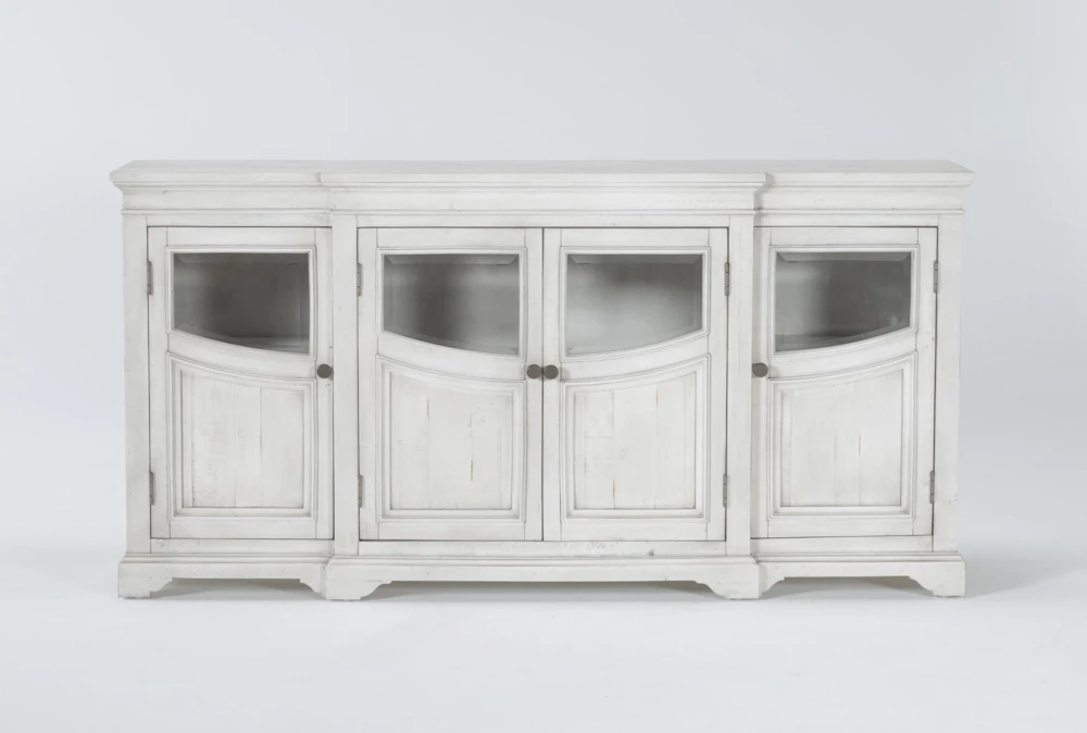 Start new traditions and celebrate special occasions with the help of our grand Martin server. Graceful lines distinguish the elegant design, which boasts durable pine construction, classic details and a variety of convenient features. In addition to 4 wood doors with glass inserts and 2 adjustable shelves behind each, there is wire management. The piece features a distressed rubbed-through finish to showcase the wood’s authentic, natural characteristics
