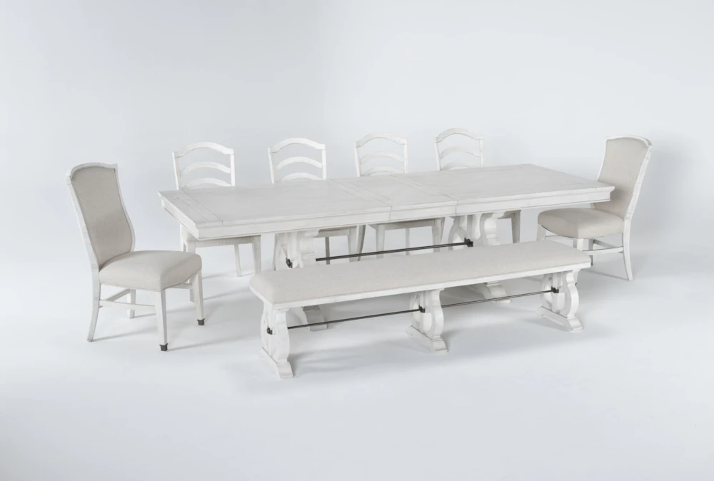 Start new traditions and celebrate special occasions with the help of our grand Martin dining collection. Graceful lines distinguish the elegant designs, which boast durable pine construction and classic details. In addition to a stately extension table with an 18” butterfly leaf, there are several seating options, including a bench, wood side chair and upholstered side chair. The pieces feature a distressed rubbed-through finish to showcase the wood’s authentic, natural characteristics.