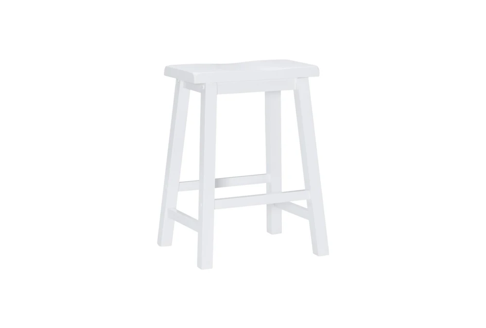 The Maya White 24In Counter Stool is a tall, casual piece made of wood with metal accents, perfect for your dining room. This stool requires assembly and is finished in a sleek white color, with 90% rubberwood and 5% finishing and hardware each.