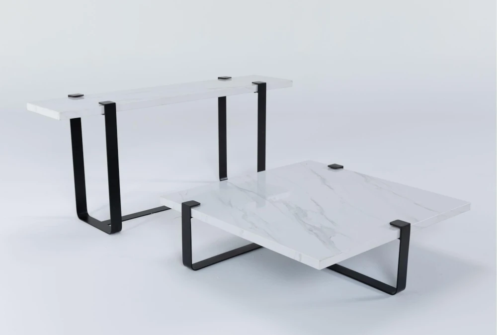 Nate and Jeremiah have elevated modern design to new heights of sophistication in their distinctive Palais collection. Featuring onyx marble tops and sleek metal legs, a coffee table and sofa table bring unique contemporary style to your living room by mixing materials that are as beautiful as they are durable. Streamlined and sculptural, these pieces will make a striking statement in your space.