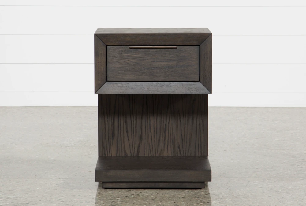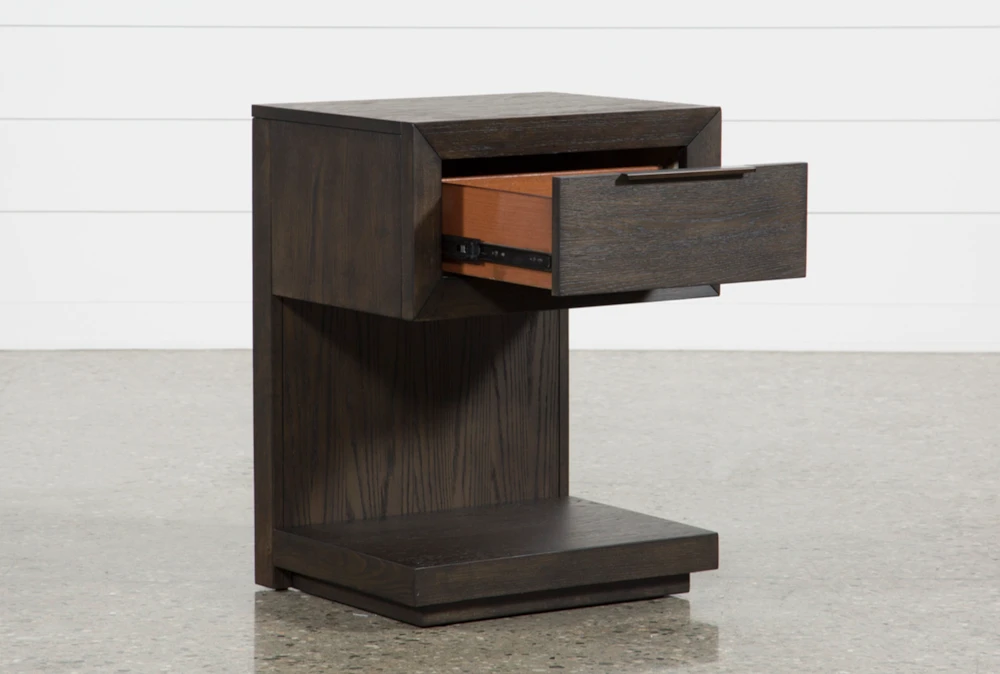 Bring bold minimalism and high function to your personal retreat with our Pierce 1-drawer nightstand. From clean, strong lines, to a rich, contemporary finish, to tech-savvy elements, this design has it all at an unbelievable value. It boasts 2 power outlets and 2 USB ports that are discreetly located in back. Not only do these smart features make it so easy to plug in lamps and charge phones and devices, they hide ugly cord clutter. The nightstand is also specifically designed to pair with the Pierce storage bed. Its unique “C” shape allows the bed’s side rail drawer to open without interference.