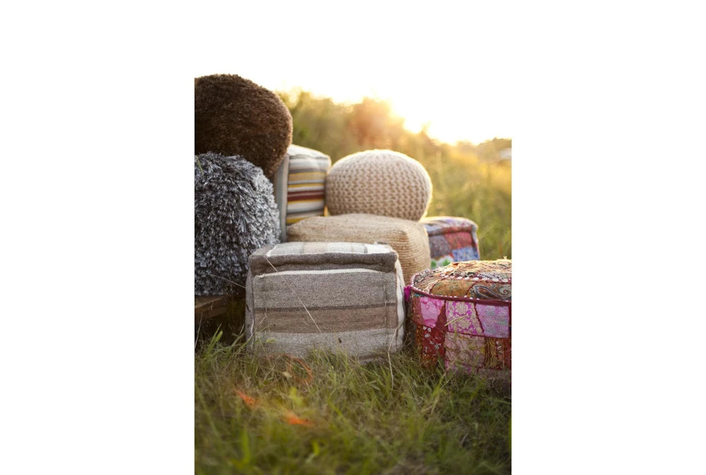 This Pouf in Brown and Beige Woven style is made with Fiber and Cotton materials, and is perfect for a dorm room. It also features a rustic design with a color scheme of Brown, Taupe, Tan, Cream, and Dark Brown. Additional properties include 100% Wool, 100% Polyester/Polyfill, and 100% Cotton.