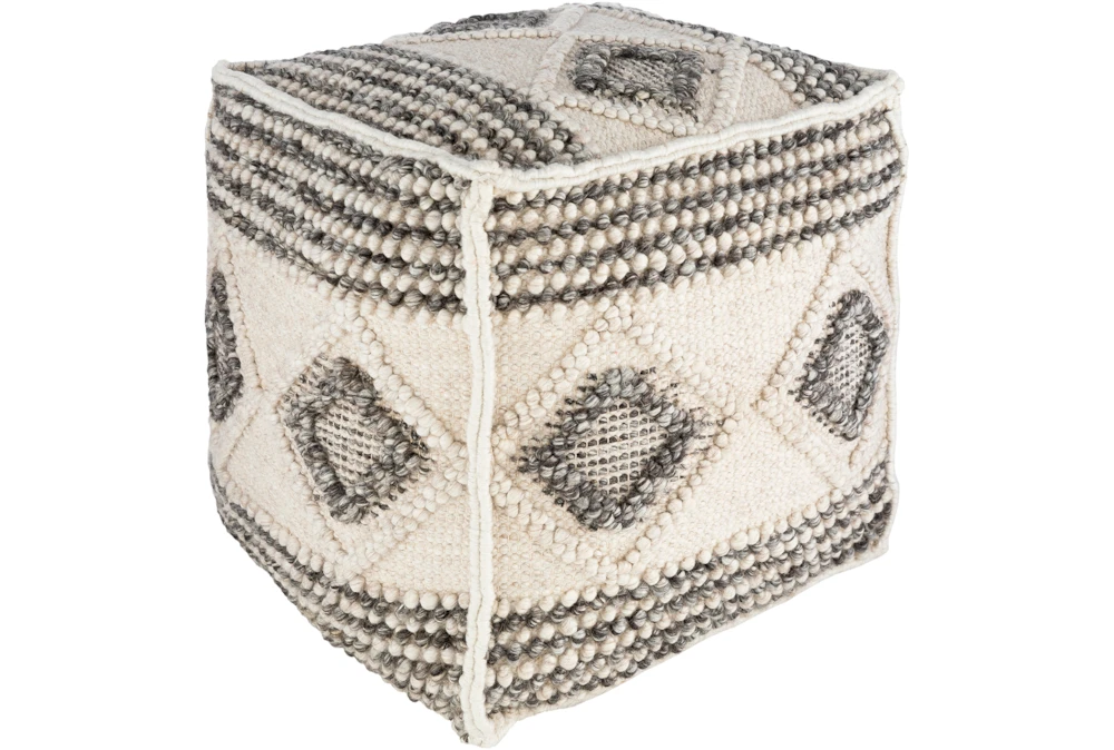 This modern pouf is crafted from high-quality fiber, boasting a chic diamond pattern in charcoal and white. With its textured finish, it adds a touch of elegance to any room.