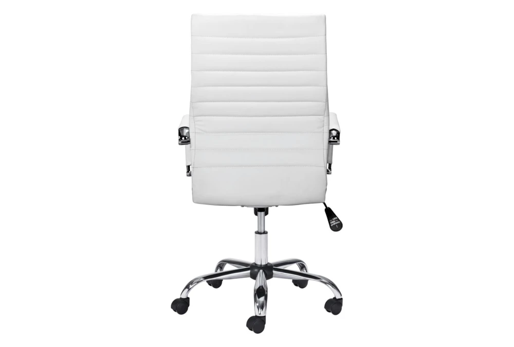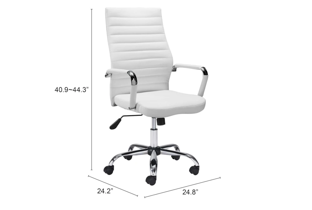 This Primero Desk Chair in White is a contemporary addition to any office, featuring casters, wheels, arms, gas lift, swivel, ergonomic design, and rolling capabilities for maximum comfort and functionality. Crafted from durable metal, this chair is perfect for any professional setting.
