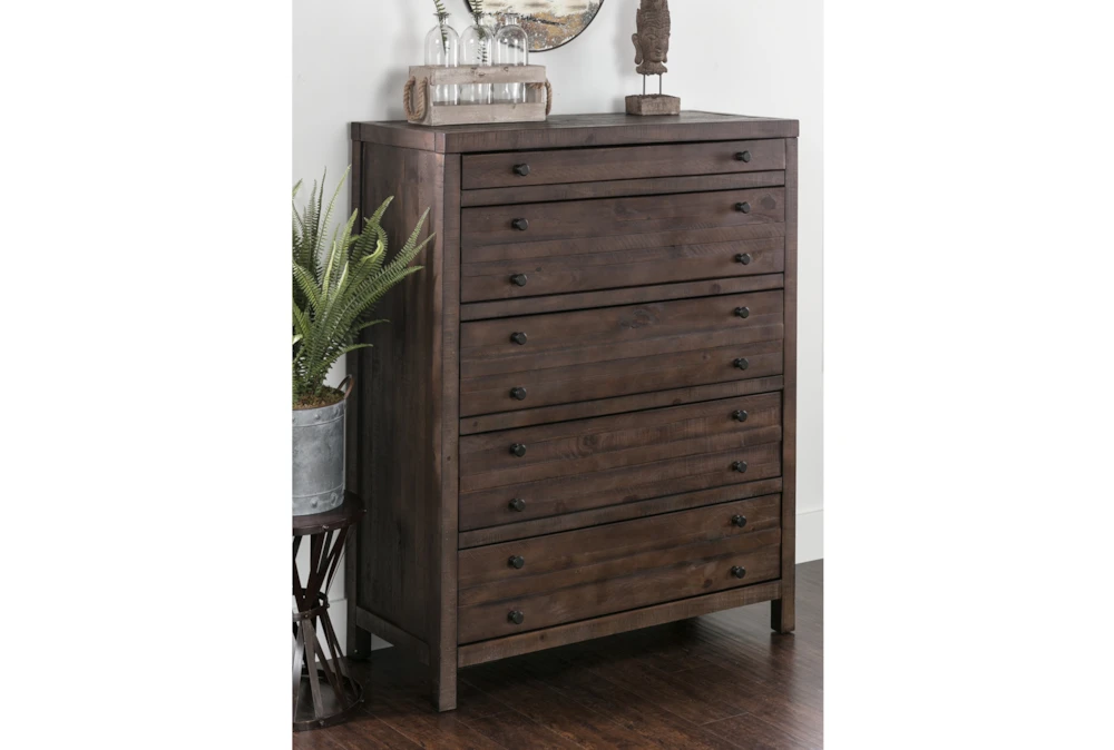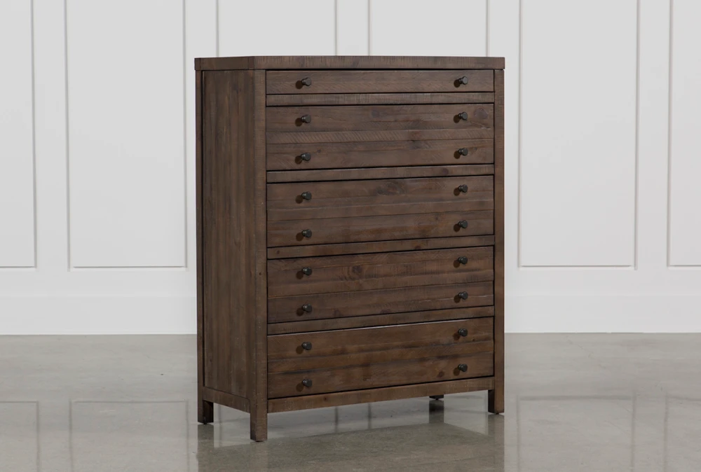 Vintage printmaker’s cabinets are the inspiration behind our handsome five-drawer Rowan chest. Rough-hewn solid pine construction, charming planked detail and rustic bronze hardware instill heirloom character. Uniquely designed drawers – like the kind used for organizing maps, plans and blueprints – have been reimagined for bedroom use.