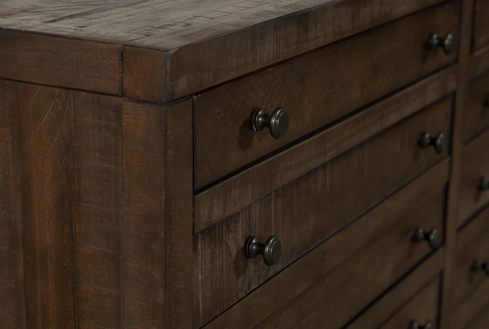Vintage printmaker’s cabinets are the inspiration behind our handsome eight-drawer Rowan dresser. Rough-hewn solid pine construction, charming planked detail and rustic bronze hardware instill heirloom character. Uniquely designed drawers like the kind used for organizing maps, plans and blueprints have been reimagined for bedroom use. The two narrow top drawers include felt-lined inserts that provide a soft spot for jewelry.