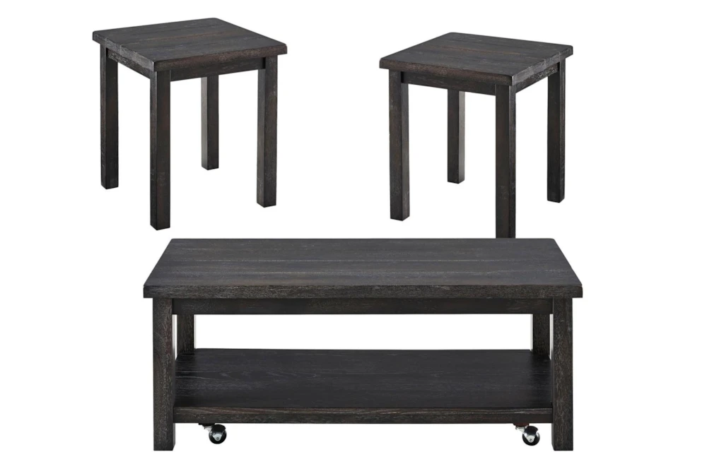 The Silverton II 3-Piece Coffee Table Set is a rustic style furniture collection made from MDF and secondary materials of wood, rubberwood, and knotty oak. The set includes three narrow tables with casters, perfect for small spaces and requiring assembly.