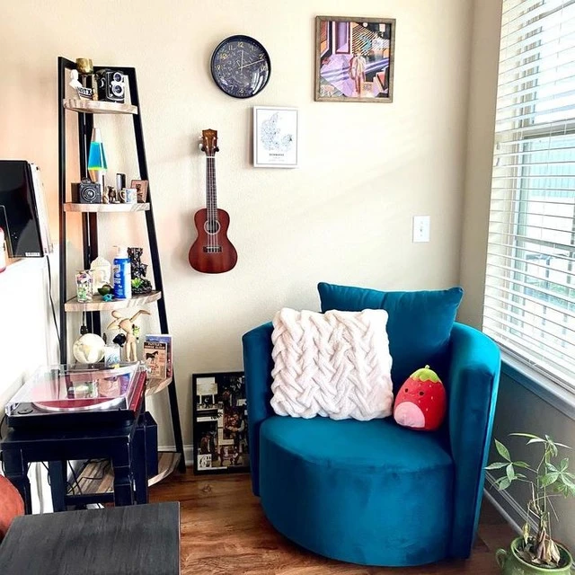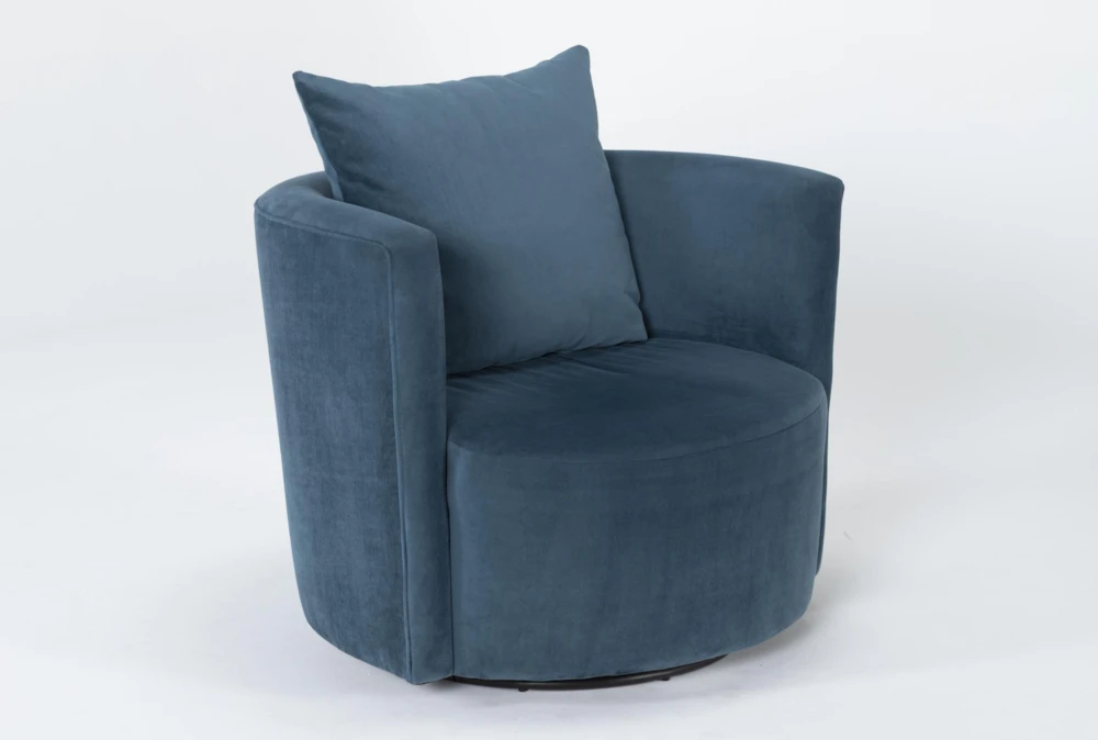 Put a new spin on any seating arrangement with our Twirl swivel accent chair. Featuring a rotating base that allows you to experience easy motion, relaxation and conversation, this design brings smooth moves and chic style to your room. We’ve upholstered it in a velvety navy fabric, but you can have this piece customized through our Special Order program and choose the perfect option for you.
