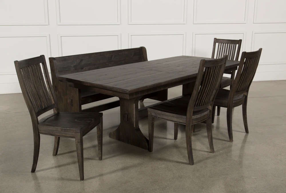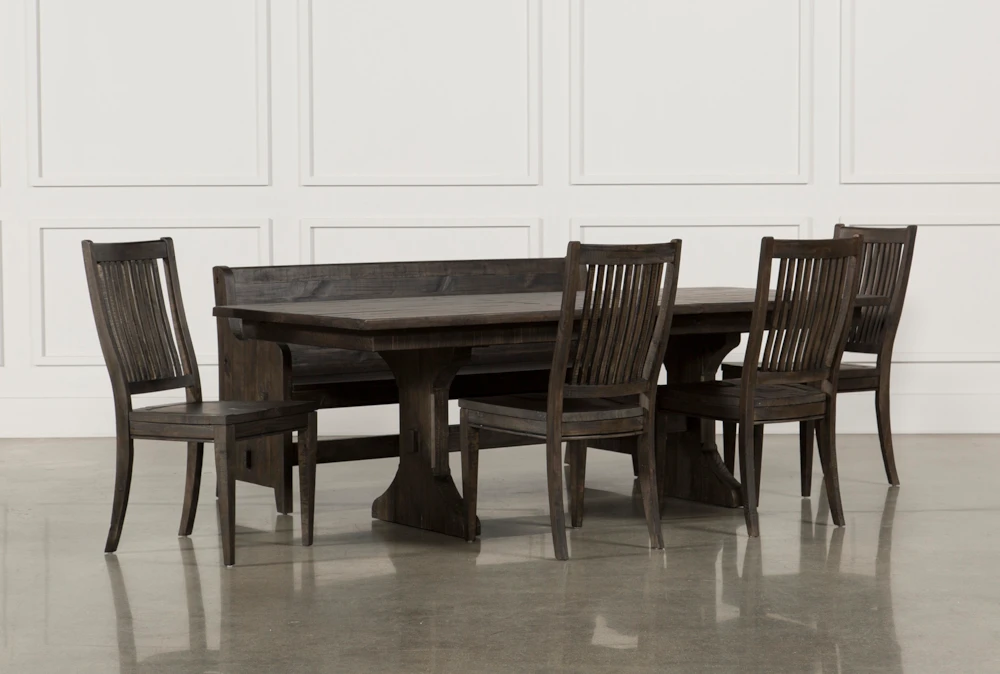 Thanks to our Valencia collection’s extraordinary popularity, we’re bringing its special blend of old and new to the dining room. Distinguished by solid pine construction and�a cozy weathered charcoal finish, each piece is durable, handsome and hospitable. In addition to an heirloom-style extension trestle table, this set includes a slat back side chair and church pew bench, which help create the perfect setting for entertaining.