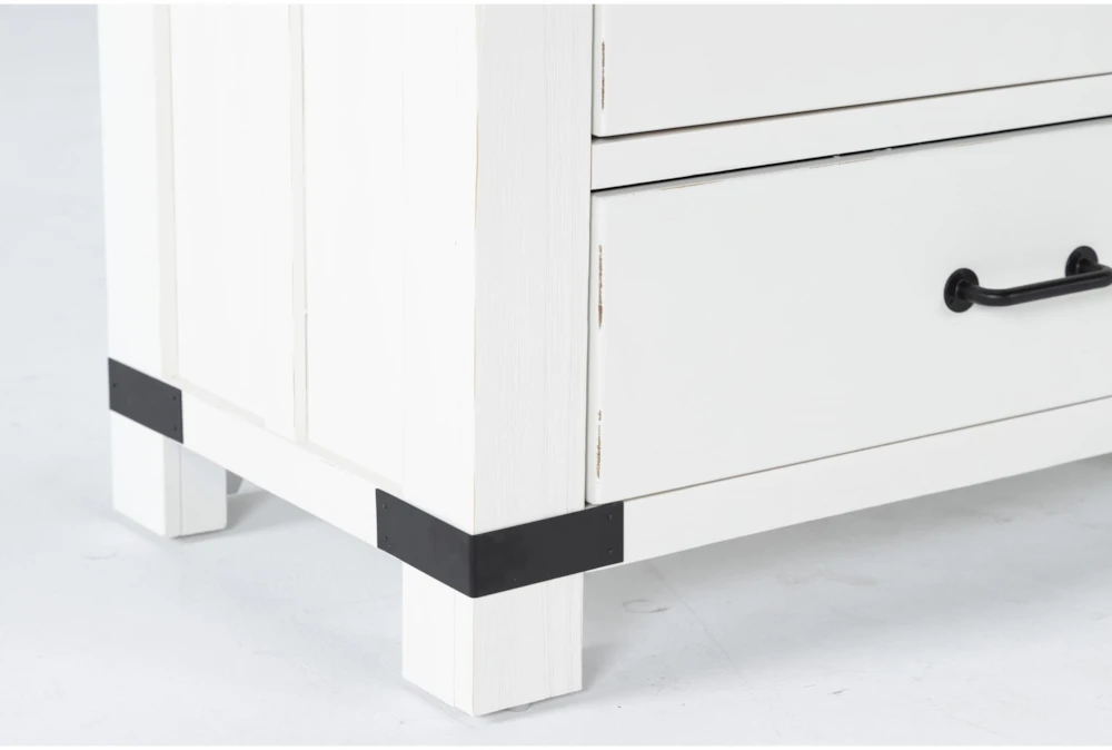 When it comes to bringing charm, character and function to your retreat, no collection does it better than our Wade bedroom designs. Enriched by farmhouse features, these pieces offer inviting style, quality construction and a combination of hardworking materials. In addition to solid pine and pine veneers in a silo white finish, you’ll find metal elements in a forged iron finish. Drawers with French and English dovetail joinery and side-mounted ball-bearing guides ensure smooth operation, while details like USB ports in the nightstand and touch LED lighting on the storage bed incorporate convenient smart technology.
