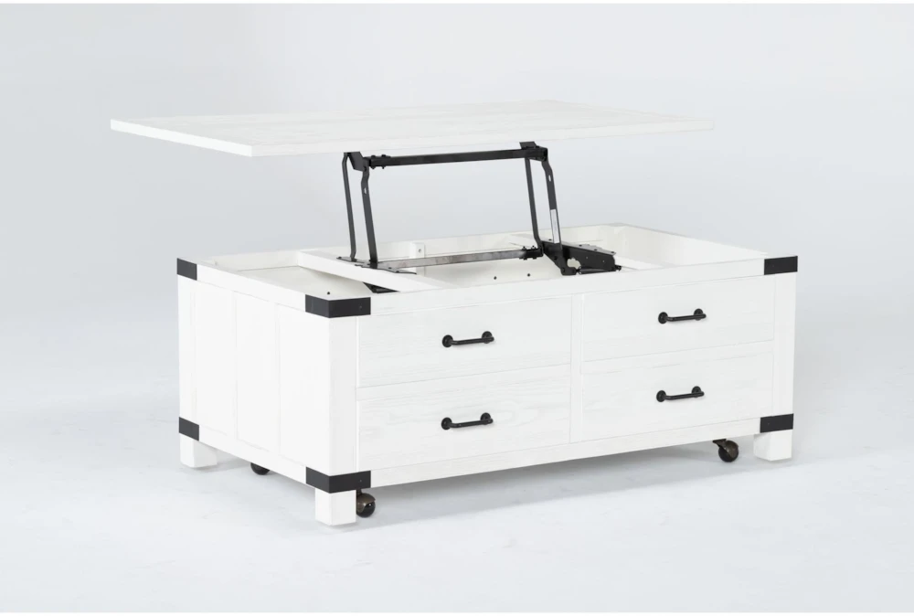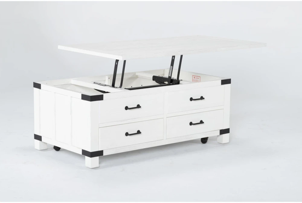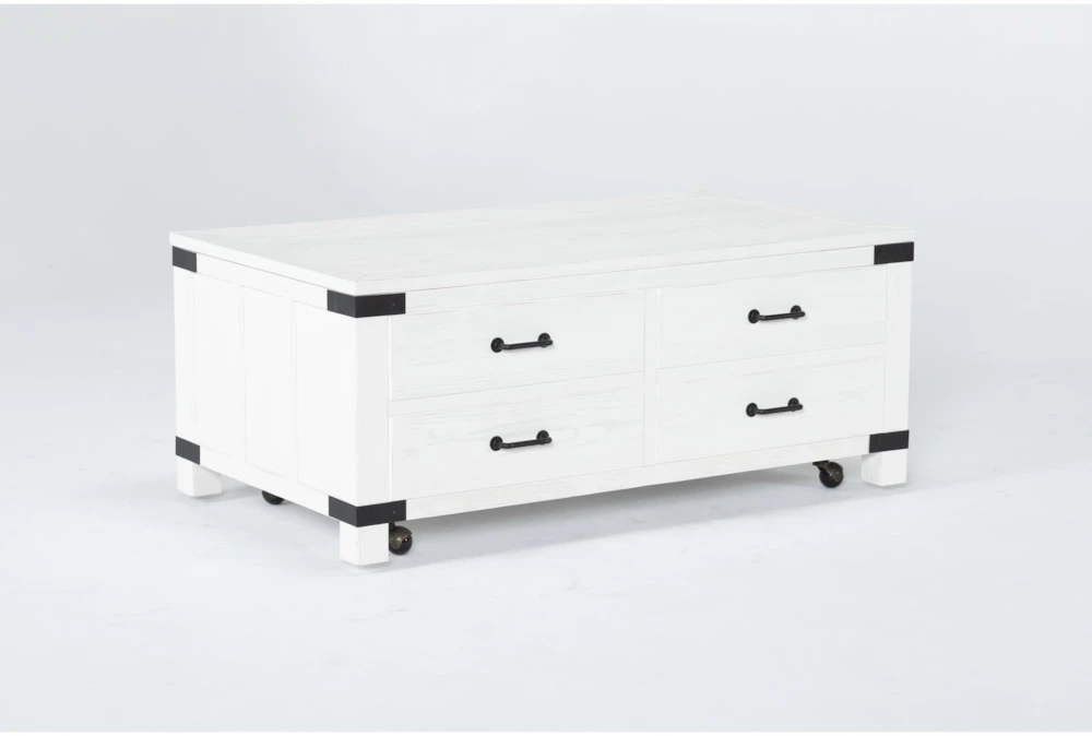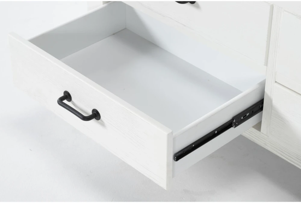When it comes to bringing charm, character and function to your living room, no collection does it better than our Wade occasional tables. Enriched by farmhouse features, these pieces offer inviting style, quality construction and a combination of hardworking materials. In addition to solid pine and pine veneers in a silo white finish, you’ll find metal elements in a forged iron finish. Drawers with French and English dovetail joinery and side-mounted ball-bearing glides ensure smooth operation, and they provide plenty of storage for all of your essentials.