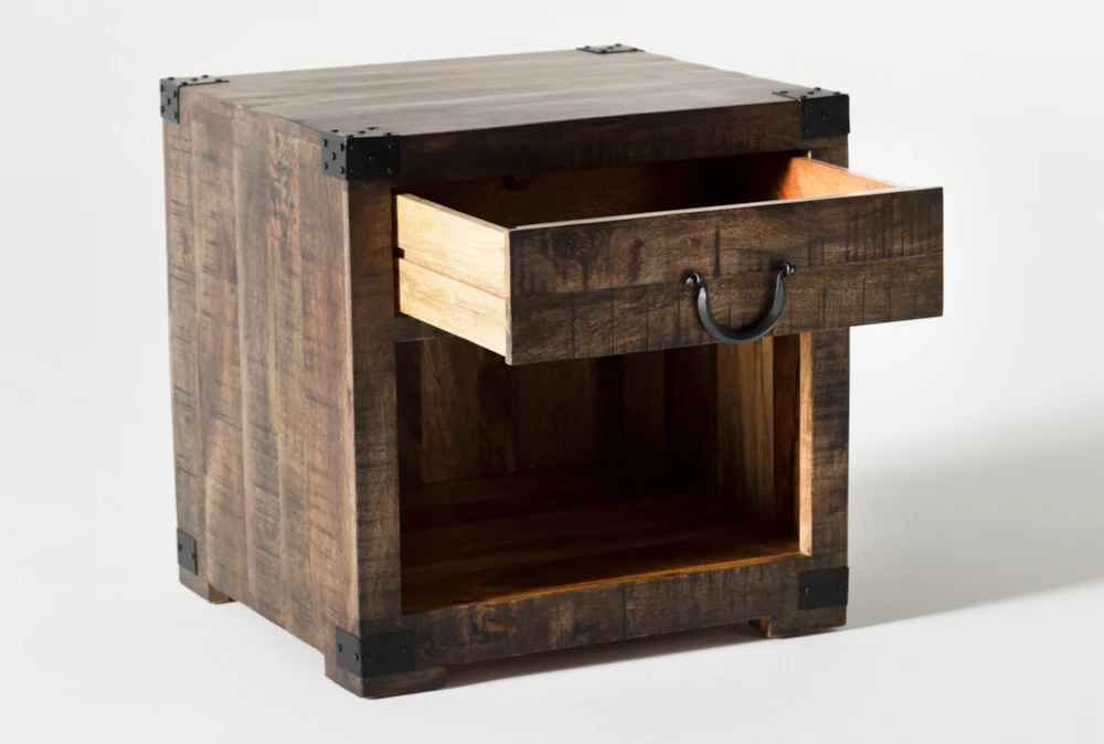 Our Wally end table truly lives up to its industrial look with elements that add equal parts personality and functionality. Distinguished by sturdy mango wood construction, the piece also features handsome exposed metal details.