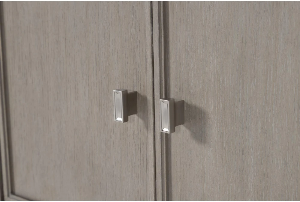 Our Westridge media console is a functional and beautiful focal point for your space. Quartered oak veneer is decked in a light finish with taupe and grey tones, which create a relaxed, casual, versatile look. With closed and open storage for all of your equipment, plus modern metal details, this piece is prepared for future feature presentations.