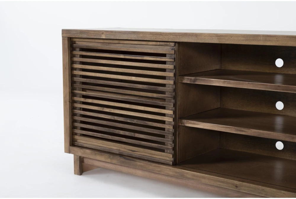 Create an easy, breezy media display with our distinctive Zayne TV console. Available in two sizes, the design features open slats and a versatile bourbon finish that enhance its natural modern sophistication and complement both minimalist and boho styles. Crafted of engineered wood and solid wood, the entertainment hub brings durability, quality and personality to your space. Shelving and cord management ensure all of your equipment stays strategically and neatly in place.